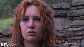 Fuck machine is pounding on bounded serf viciously